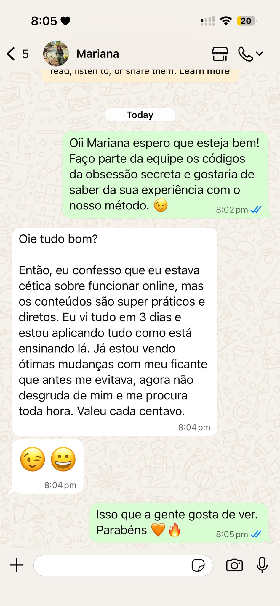 De forma alguma. O Obsessão Secreta te ensina a ser a melhor versão de si mesma, sem fingir ou manipular.